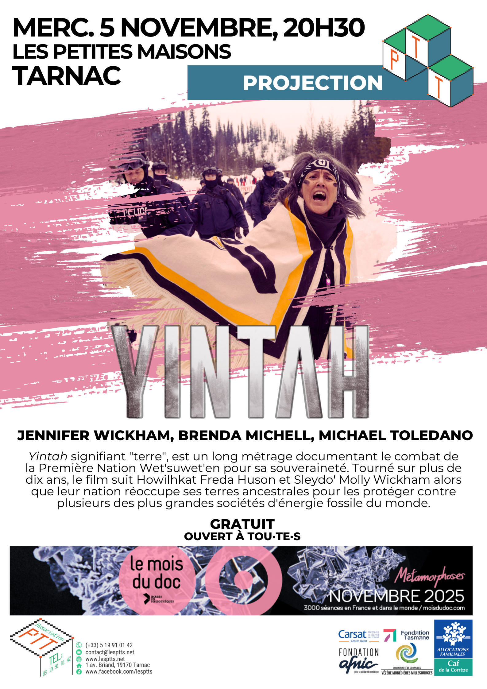 Dans le cadre du Mois du Film Documentaire, édition 2025, les PTT vous invitent à venir regarder ensemble Yintah, un documentaire de Brenda Michell, Michael Toledano, Jennifer Wickham Quand ? Le mercredi 5 novembre, à 20h30 Où ? Aux Petites Maisons, salle d'exposition municipale située derrière la mairie de Tarnac. Yintah signifiant "terre", est un […]